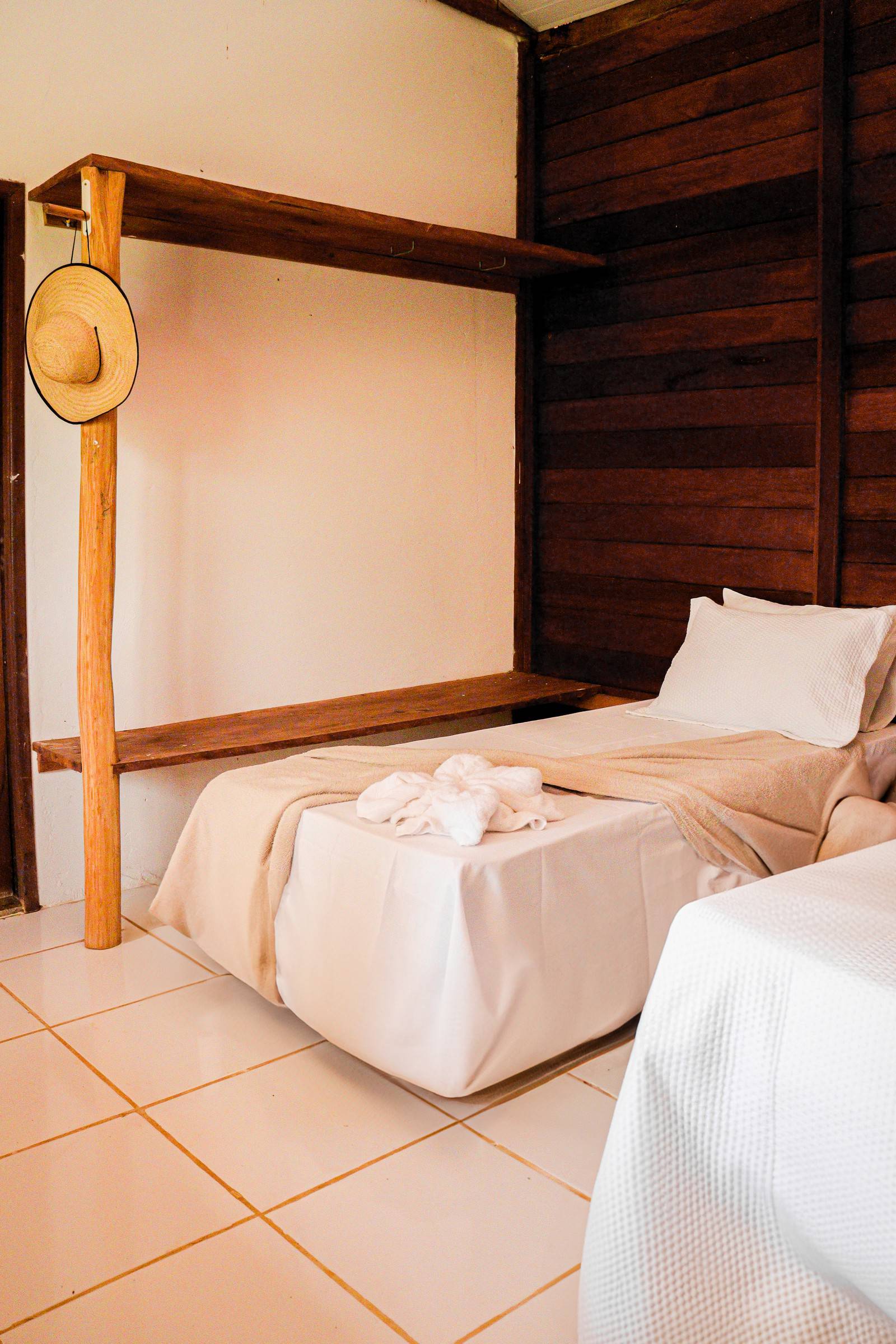 Chalé espaçoso e confortável, com uma cama de casal e uma de solteiro, ideal para pequenos grupos ou famílias.